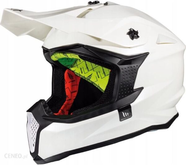 KASK INTEGRALNYMT FALCON SOLIDKolor: bia?y po?yskRozmiar: SObwód g?owy: 55-56 cmWaga: 1350 g (+/- 50 g)Podstawowe cechy:nowoczesny wygl?d skorupy oraz miejsce pod ochraniacz karkudoskona?a wentylacja wewn?trznanajwy?sza norma EC/ONU 22.05.P oraz certyfikat DOTos?ona szcz?ki dodatkowo wzmocniona certyfikat Pwygodne i bezpieczne zapi?cie mikrometryczneskorupa posiada patent MT Helmets HI absorbtion inner shellwyci?gana wy?ció?ka nadaj?ca si? do praniawy?ció?ka jest wykonana z wytrzyma?ego materia?u gwarantuj?cy d?ugotrwa?e u?ytkowanieregulowany daszek na ?rubach